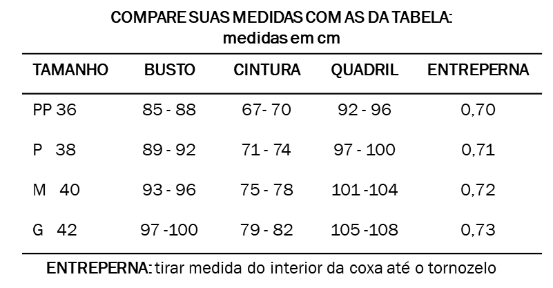 Composição Forro 95% Poliéster 5% elastano